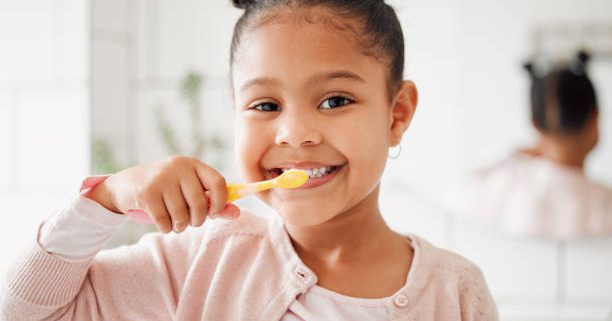 Children should brush for two minutes, twice daily, using fluoride toothpaste. Parents should supervise brushing until about age 7–8.